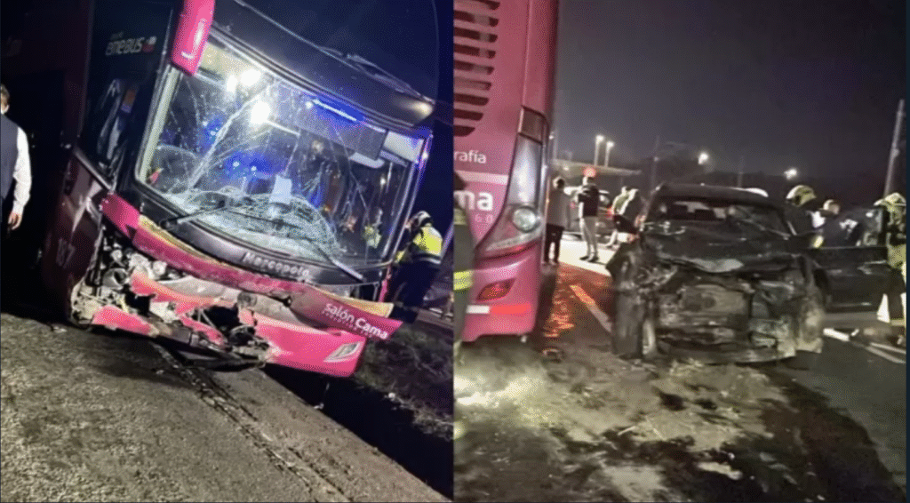 Una colisión entre un auto particular y un bus de la empresa Emebus se registró la noche de este jueves en San Pedro de la Paz, región del Bío Bío.